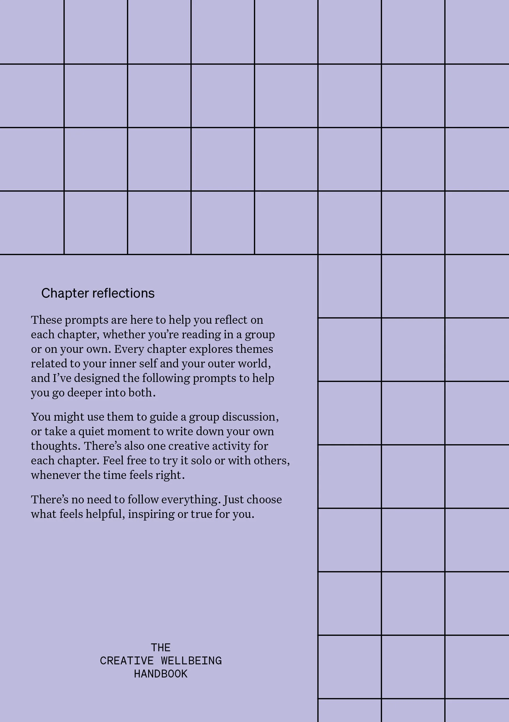 This page gives you everything you need to start your own Creative Wellbeing circle – from discussion prompts to downloadable slides and soundscapes (you’ll just need your own copies of the book!).