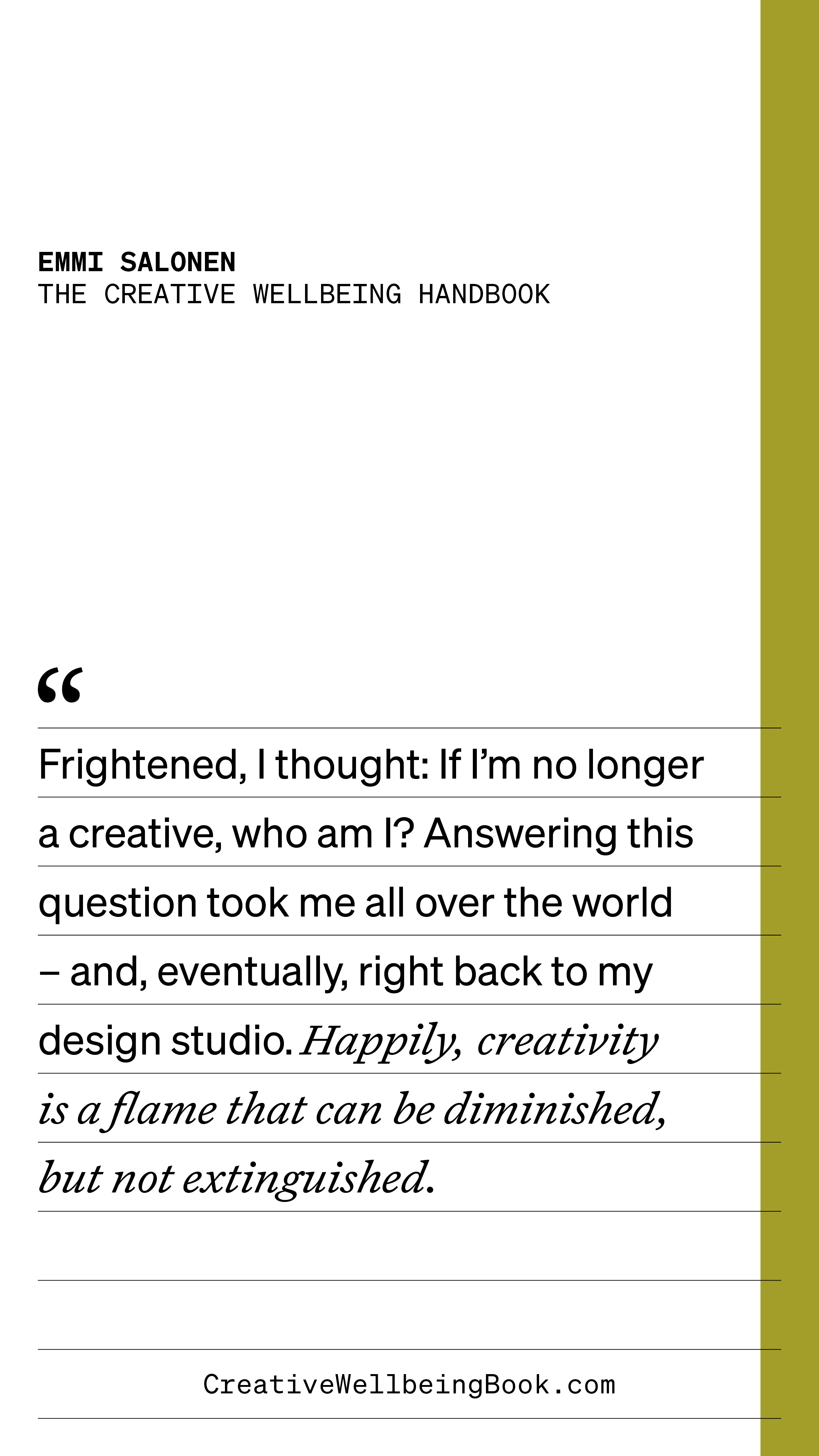 Anyone whose work depends on creative energy, from freelancers and students to studio leaders and brand strategists. Whether you’re stuck, burned out, or just looking to re-energise, this book is a gentle and practical guide.